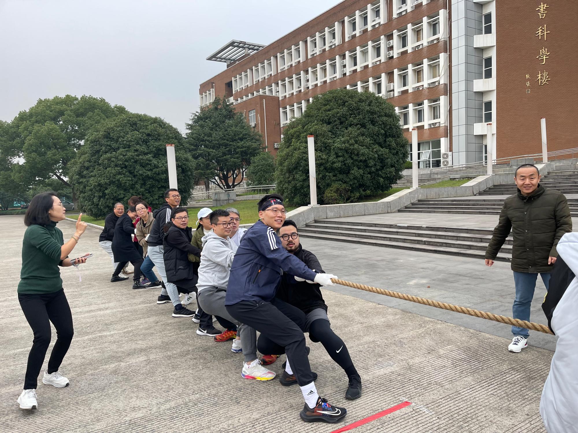 学院组织的拔河比赛,我系教师积极参与,兴致十足。原定12人的参赛队伍,竟有十五六人踊跃登场,此外,还有很多的本科生、研究生同学过来观战助威。比赛场上,大家奋力拼搏、豪气干云、呐喊欢呼、声遏行云。虽然最终止步四强,但成绩是次要的,大家通过比赛愉悦了身心,展现了团结一致、昂扬向上的精神面貌,收获满满!