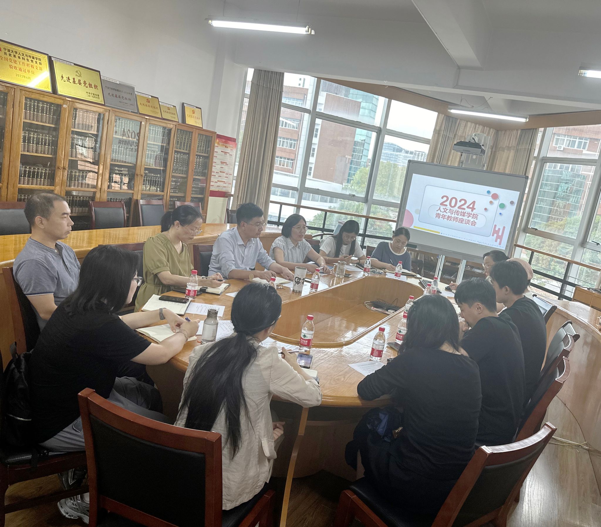 青年教师座谈会在包玉书科学楼10号楼216会议室召开。执行院长李乐出席座谈会,院党委书记张佩芬主持会议,行政各办公室负责人以及入职一年内的青年教师参加了会议。