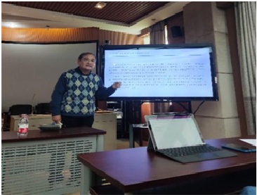 周荐教授在讲座中介绍了在清中晚期新名词写入旧体诗的语言实践活动。周教授从帝国政治上的衰落和诗人对新名词的热衷、士人们诗文中对新名词的态度、澳门之子郑观应诗文的新名词展示等多方面加以论证,旁征博引,深入浅出。讲座末尾,周荐教授还就讲座内容与师生互动,现场气氛热烈,掌声阵阵。