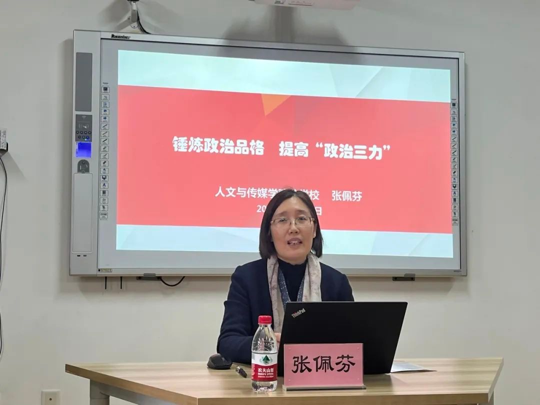党委书记张佩芬开启党务干部培训班第一讲,为学员们带来《锤炼政治品格,提高“政治三力”》的专题党课。张老师首先强调了不断提高新时代党员干部“政治三力”的现实意义,后从三个维度阐述了提高新时代党员干部“政治三力”的具体要求:第一,提高党员干部的政治判断力就要不断增强科学把握形势变化的能力,提高精准识别现象本质的能力,提高清醒明辨行为是非的能力;第二,提高党员干部的政治领悟力就要在学习中领悟、领会党的创新理论,注重培养思考钻研问题的能力,要心怀“国之大者”;第三,提高党员干部的政治执行力,就要经常同党中央精神对表对标,及时校准偏差,坚持底线思维、增强忧患意识,坚持问题导向,解决制约发展的瓶颈和问题,增强狠抓落实的本领,切实提高落实的效果。