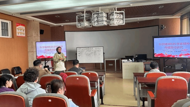 活动中,新闻传播学系副主任赖明东同志结合其研究课题,以屠呦呦旧居陈列馆、谈家桢生命科学教育馆、钱学森故居、苏步青励志教育馆等典型案例为例,深入讨论科学精神和科学家精神的传播路径。他指出,优化科学精神和科学家精神的传播路径需要丰富传播内容、拓展传播方式、发挥积极正向的榜样力量,鼓励本科生与研究生都要汲取科学家精神、树立崇高理想。