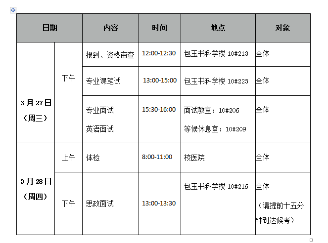 3.坚持全面考查,突出重点。在对考生德智体等各方面全面考察基础上,突出对专业素质、实践能力以及创新精神等方面的考核。