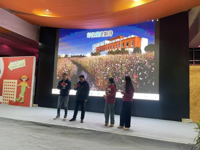 随着趣味游戏和暖场视频带动全场气氛,联欢会在主持人陕庆大气雅致的开场后,进行了文艺表演。