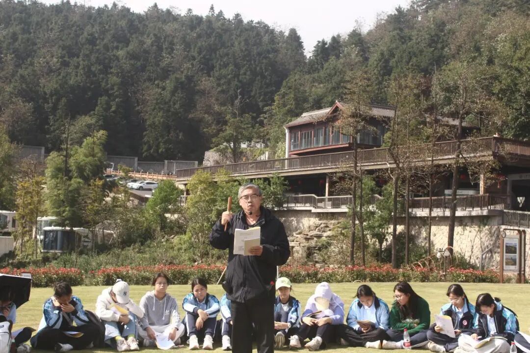 副院长田启涛、培训办主任王志凯全程带队指导。此次活动是姜山中学文学特长生培养工程系列活动之一,旨在通过“行走的课堂”,将唐诗从纸面带入山水之间,让青年学子在真实的历史场景中感受古典文学的生命力与感染力。两天行程紧凑而充实,既有课堂讲授,也有实地吟诵与探访,同学们在行走中感受诗歌,在山水间体悟文化。