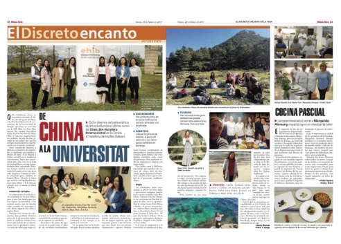 13级中西合作旅游管理专业的第二批共计13名同学奔赴西班牙巴利阿里群岛大学开始了为期一年的交换学习。随着我校和西班牙巴利阿里群岛大学合作办学项目的日益成熟,双方在课程设置和培养方案上日渐完善。本届学生在西班牙的课程设置更贴近专业培养目标也更具有行业应用性,理论教学与实践教学双管齐下,辅以大量的课堂团队作业,不仅为学生们建构了更完善的知识体系,更让大家有机会深入接触当地文化,提升语言水平,拓宽国际视野。巴利阿里群岛大学高度重视该合作办学项目,当地的报纸更是对在EHIB(该校酒店学院)学习的麻豆av