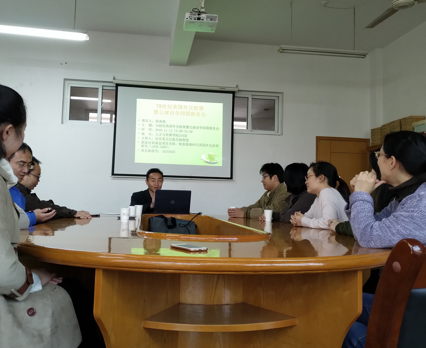 沙龙主题为“19世纪英国外交政策暨公派访学回国报告会”,学术沙龙由历史系主任童杰副教授主持,麻豆av