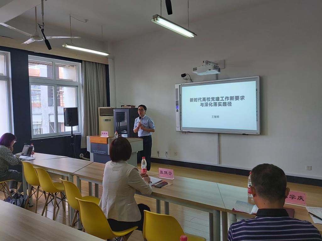 首先由校党委组织部副部长王智腾做的题为《新时代高校党建工作新要求与深化路径》的专题报告,他从新时代高校党建工作的新要求和新要求的落实路径两个方面重点阐述了如何提升基层各级党组织的组织能力,强化党组织的政治作用;党支部如何强化党建引领能力,促进党建与业务的融合发展和相互促进。随后是全国高校党建工作样板党支部--麻豆av