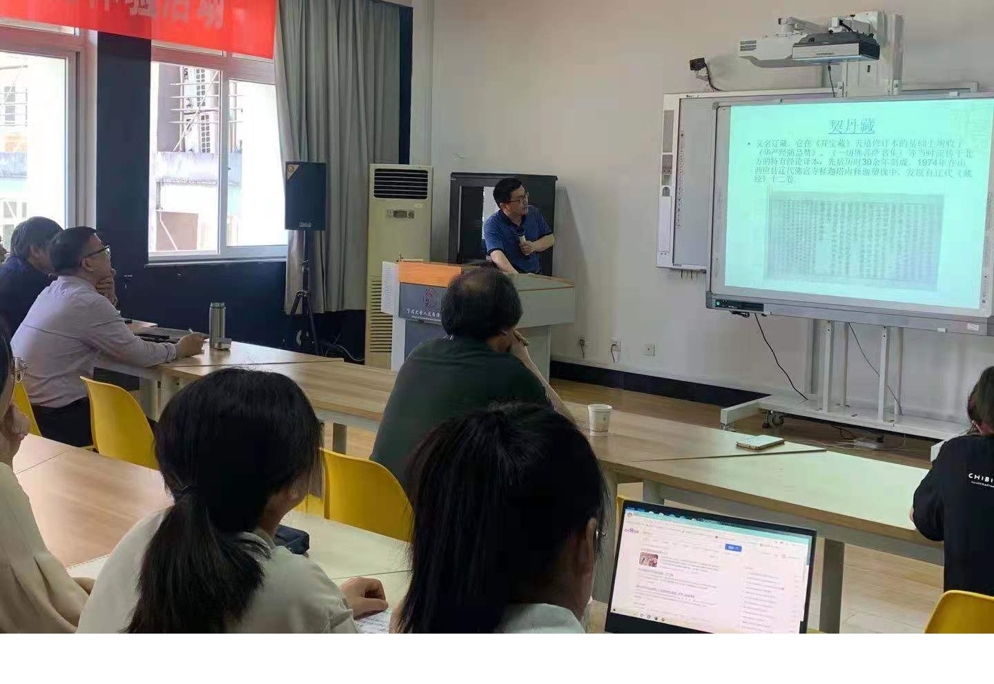 郑贤章教授基于对汉文佛典研究所持的独特视角给我们带来了一场精彩的学术盛宴。郑贤章教授以语言研究中非常重要的“新材料的发掘”为出发点,引出本次讲座的主角——“汉文佛典”,首先向我们详细介绍了国内外现存的佛教文献,国内汉文佛典如宋代《契丹藏》《赵城金藏》《思溪圆觉藏》《思溪资福藏》;元代《普宁藏》;明代《南藏》《北藏》《嘉兴藏》;清代《乾隆大藏经》。国外的佛教文献如《高丽大藏经》《大正新修大藏经》等。郑教授指出佛典是一种未被充分研究的珍贵语料,现如今仍有非常重要的研究价值。