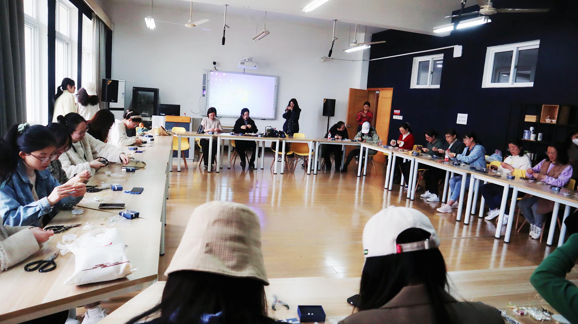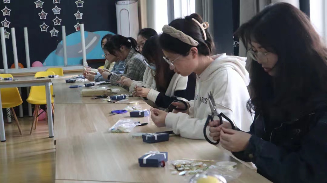 在本部10号楼208室举办了“穿针引线,簪花自提”的活动。在这样一个特殊的日子,学院的女老师和同学们共同参与其中,在愉快的两个小时中,体验了做手工的快乐,也收获了精美的胸花和发簪。
