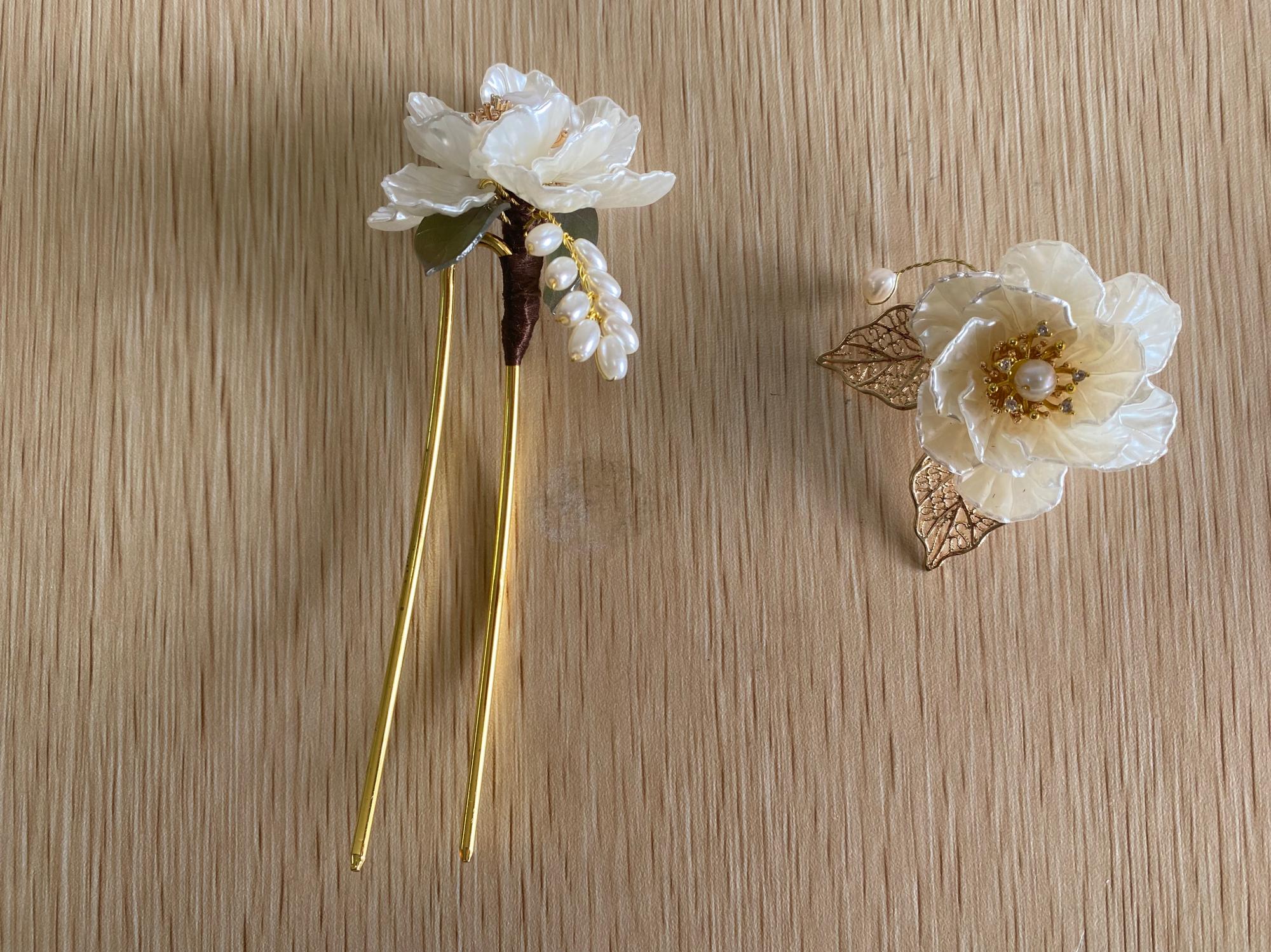 簪花老师用轻柔的嗓音描绘出远古时期胸针形成的场景,讲解各个工具的具体用法和制作的详细步骤。讲到关键点时还会走到师生中间的位置展示半成品,以便在座的簪花人更好理解制作过程。得益于簪花老师清晰地讲解,大家很快掌握了方法。