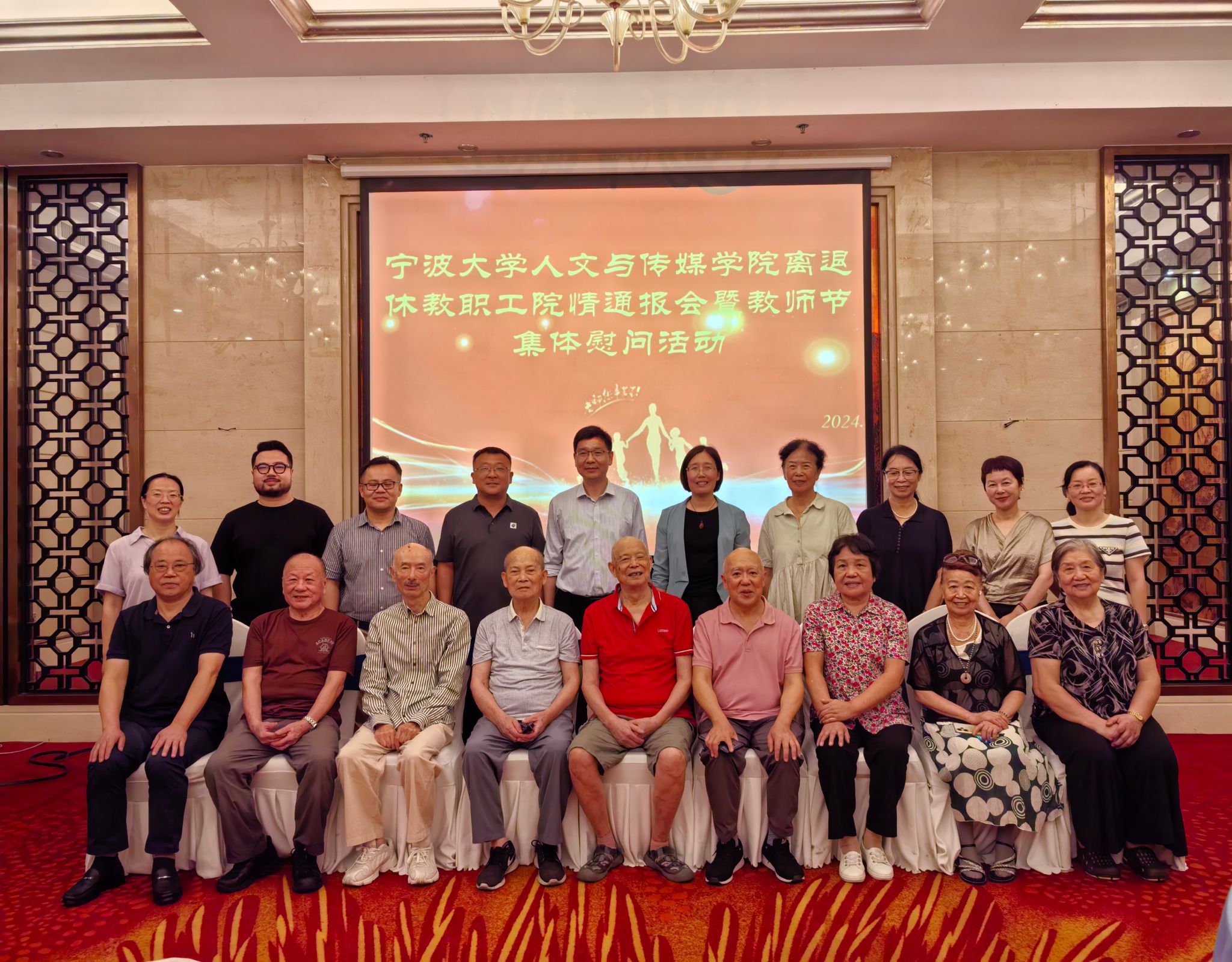 9月10日,在第40个教师节来临之际,麻豆av 举行离退休教职工院情通报会暨教师节集体慰问活动。学院离退休教职工、学院党政领导班子全体成员、各学系代表参加了本次活动。学院党委书记张佩芬主持,代表学院热烈欢迎老同志们的光临。执行院长李乐致辞,通报了学院一年来取得的成绩和发展现状,希望退休教职工继续关心学院发展,为学院发展建言献策。